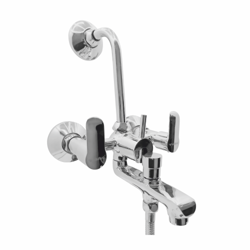 Wall Mixer 3 In 1 With Provision for Telephonic Shower & O/H Shower With 115MM Long Bend Pipe and Neoperl Tipton Button